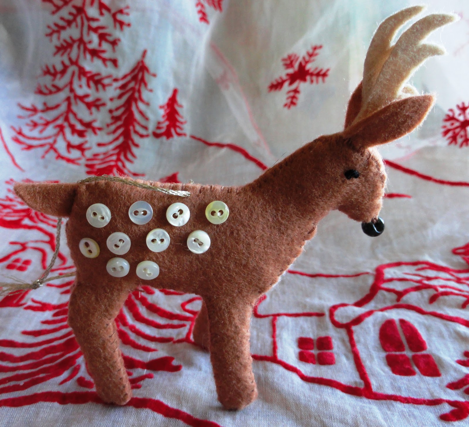 From Linda, a pretty button embellished package...and inside, the world's cutest deer with mother-of-pearl button spots! I adore this!